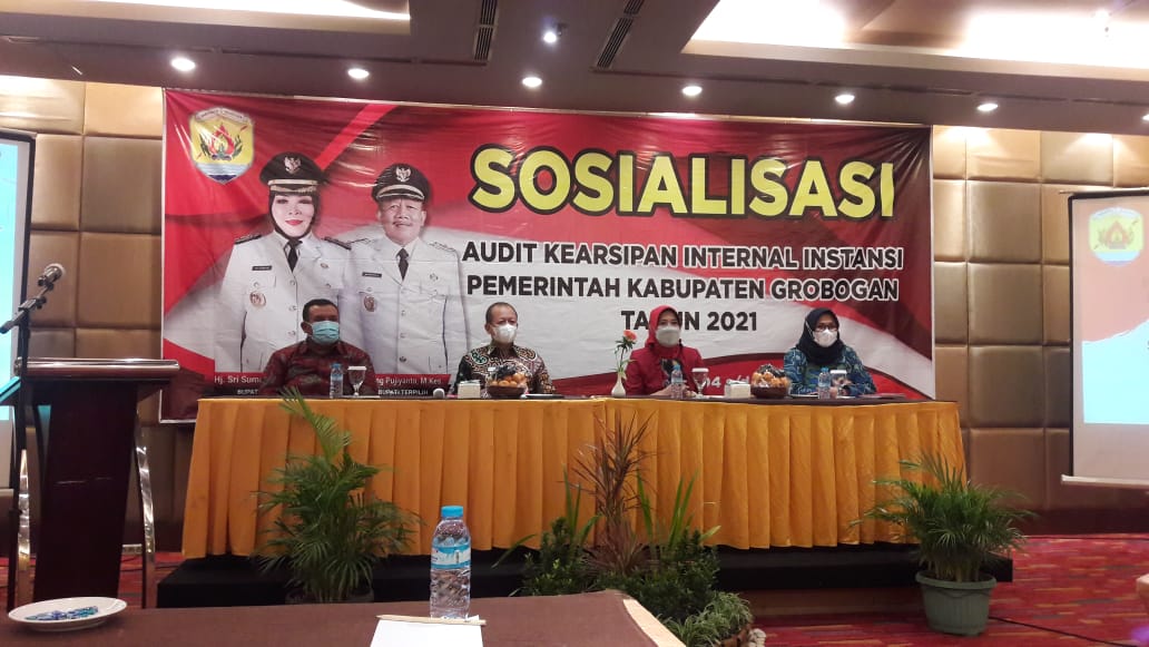 Pengawasan atau audit kearsipan adalah proses kegiatan dalam menilai kesesuaian antara prinsip, kaidah dan standar kearsipan dalam penyelenggaraan kearsipan. Pengawasan/Audit Kearsipan Internal dilaksanakan oleh Lembaga Kearsipan Daerah dalam hal ini adalah Dinas Kearsipan dan Perpustakaan Daerah Kabupaten Grobogan. Bupati melalui Lembaga Kearsipan Daerah (LKD) Kabupaten Grobogan akan melaksanakan Audit Kearsipan Internal bagi Organisasi Perangkat Daerah di Kabupaten Grobogan pada tahun ini, yang di awali dengan kegiatan Sosialisasi Pengawasan atau Audit Kearsipan Internal. Melalui Audit Kearsipan Internal nantinya akan diperoleh peta kondisi penyelenggaraan kearsipan daerah Kabupaten Grobogan. Dengan adanya audit kearsipan akan memberikan ruang bagi organisasi perangkat daerah untuk melakukan perubahan berdasarkan rekomendasi hasil audit. Perlu diketahui bahwa tujuan audit kearsipan sebenarnya bukan untuk menghukum tetapi bagaimana agar organisasi perangkat daerah selaku pencipta arsip melaksanakan pengelolaan arsip di lingkungan masing-masing secara prosedural dan sistemik.