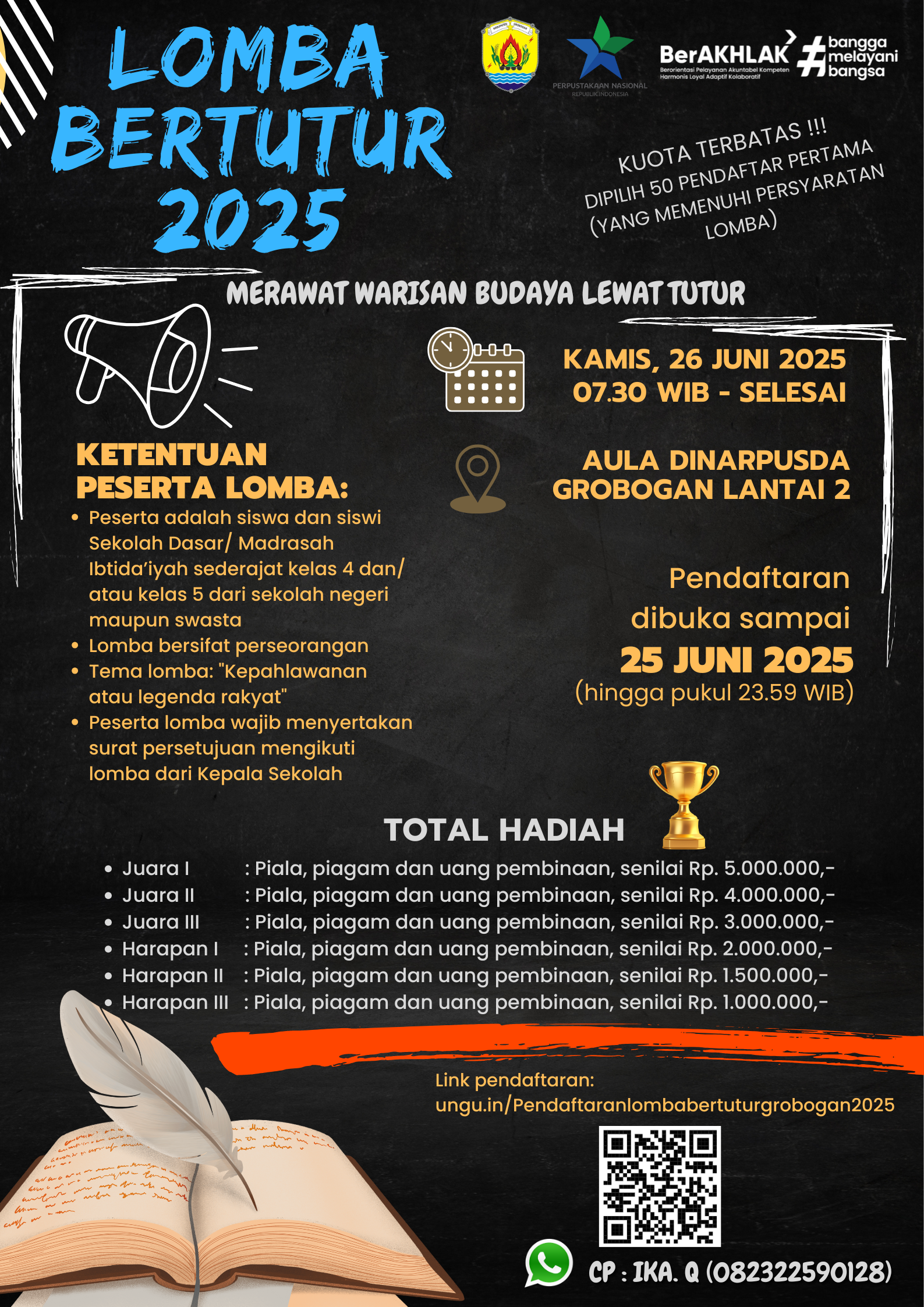 Lomba Bertutur untuk Siswa dan siswi kelas 4 dan/ atau kelas 5 Sekolah Dasar/Madrasah Ibtida’iyah sederajat dari sekolah negeri maupun swasta