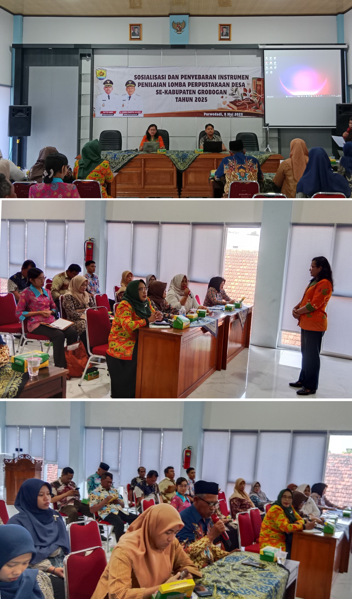 Kamis, 8 Mei 2025 — Dinas Kearsipan dan Perpustakaan Daerah (Dinarpusda) Kabupaten Grobogan menyelenggarakan kegiatan Sosialisasi dan Penyebaran Instrumen Penilaian Lomba Perpustakaan Desa Terbaik, bertempat di Aula Dinarpusda Grobogan.