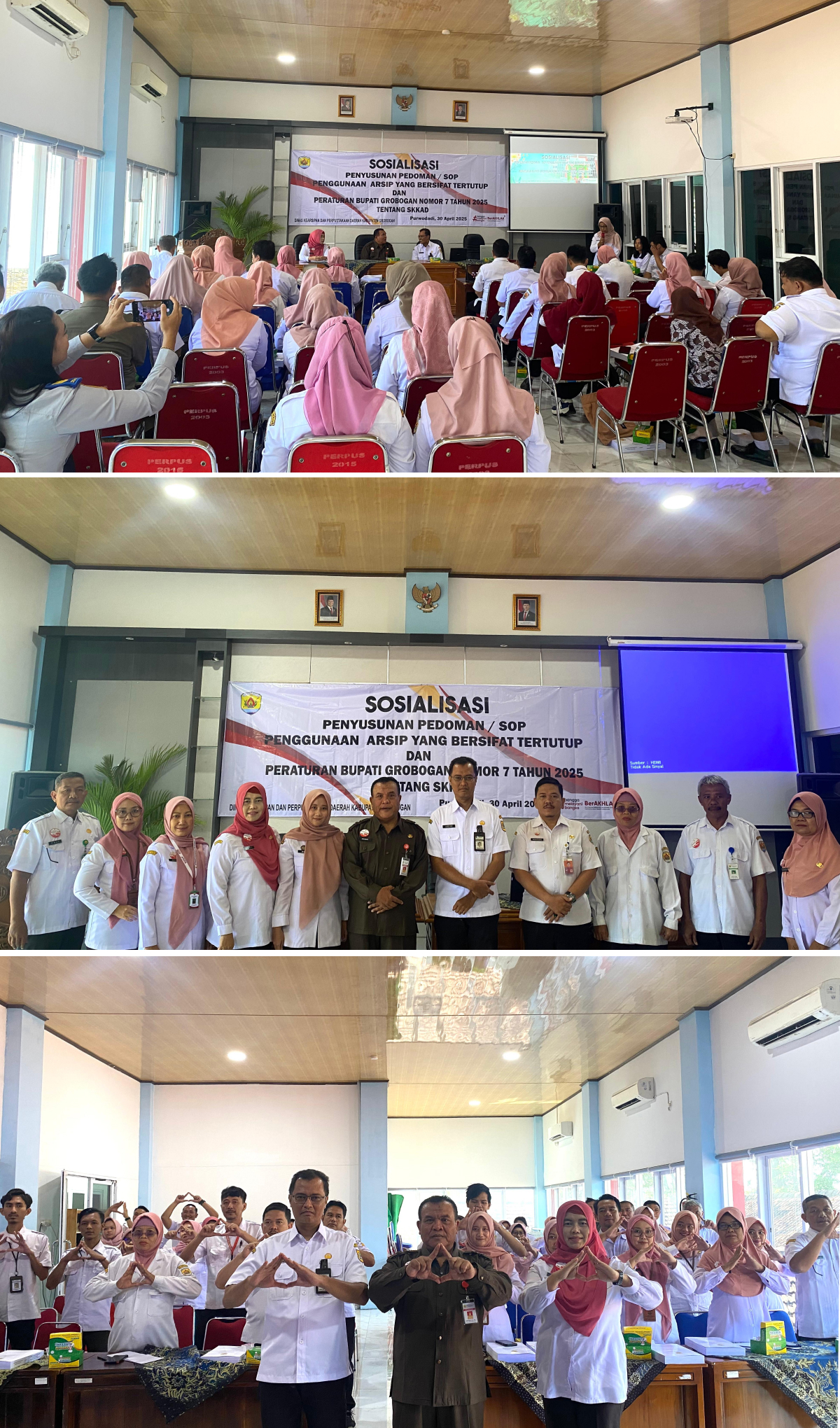Rabu, 30 April 2025 — Dinas Kearsipan dan Perpustakaan Daerah (Dinarpusda) Kabupaten Grobogan menggelar Sosialisasi Peraturan Bupati Grobogan Nomor 7 Tahun 2025 tentang SKKAD serta Penyusunan Pedoman/SOP Penggunaan Arsip yang Bersifat Tertutup, bertempat di Aula Dinarpusda Grobogan.